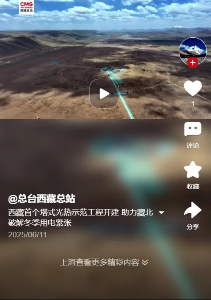 6月10日,全球海拔最高、西藏首個塔式光熱項目——西藏開投安多土碩100MW光熱電站正式開工建設的消息,被人民網(wǎng)、新華網(wǎng)、央視、光明日報、經(jīng)濟日報、科技日報、中國新聞網(wǎng)、中國西藏網(wǎng)、中國發(fā)展網(wǎng)、西藏發(fā)布、西藏日報、西藏廣播電視臺、西藏商報、安多縣廣播電視臺等各級媒體平臺宣傳報道,有力提升了集團品牌影響力和產(chǎn)業(yè)發(fā)展的傳播力。